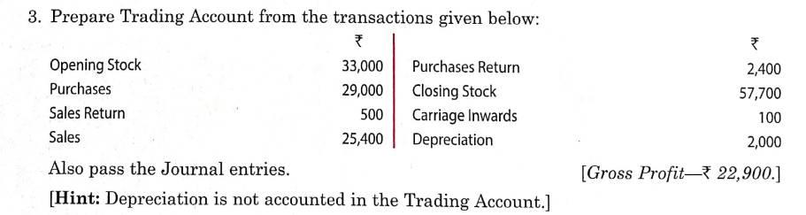 Solution of Question Number 3 Financial Statements of Sole Proprietorship TS Grewal CBSE 2023-24 Edition
