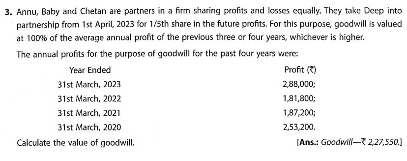 Here is the Solution of Q 3 Goodwill TS Grewal Class 12 Accountancy 2023-24 for the CBSE Board.