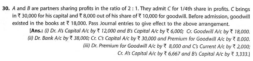 Solution of Question Number 30 Admission of Partner TS Grewal CBSE 2023-24 Edition