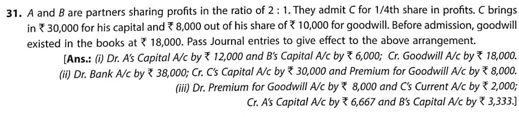 Solution of Question Number 31 Admission of Partner TS Grewal CBSE 2022-23 Edition