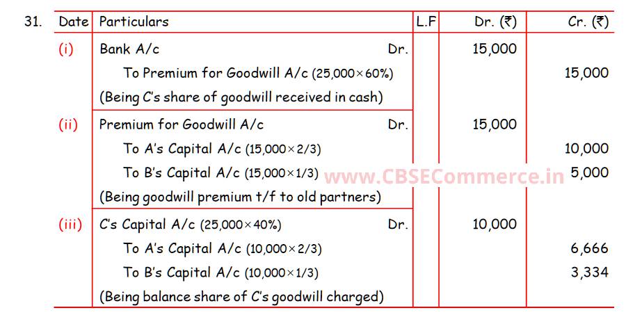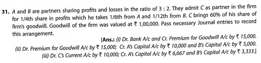 Solution of Question Number 31 Admission of Partner TS Grewal CBSE 2023-24 Edition