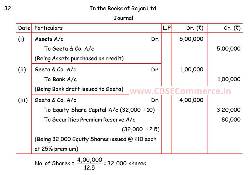 Solution of Question Number 32 Accounting for Share Capital TS Grewal CBSE 2022-23 Edition