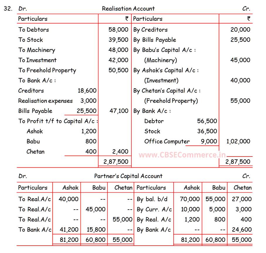 Solution of Question Number 32 Dissolution of a Partnership Firm TS Grewal CBSE 2022-23 Edition