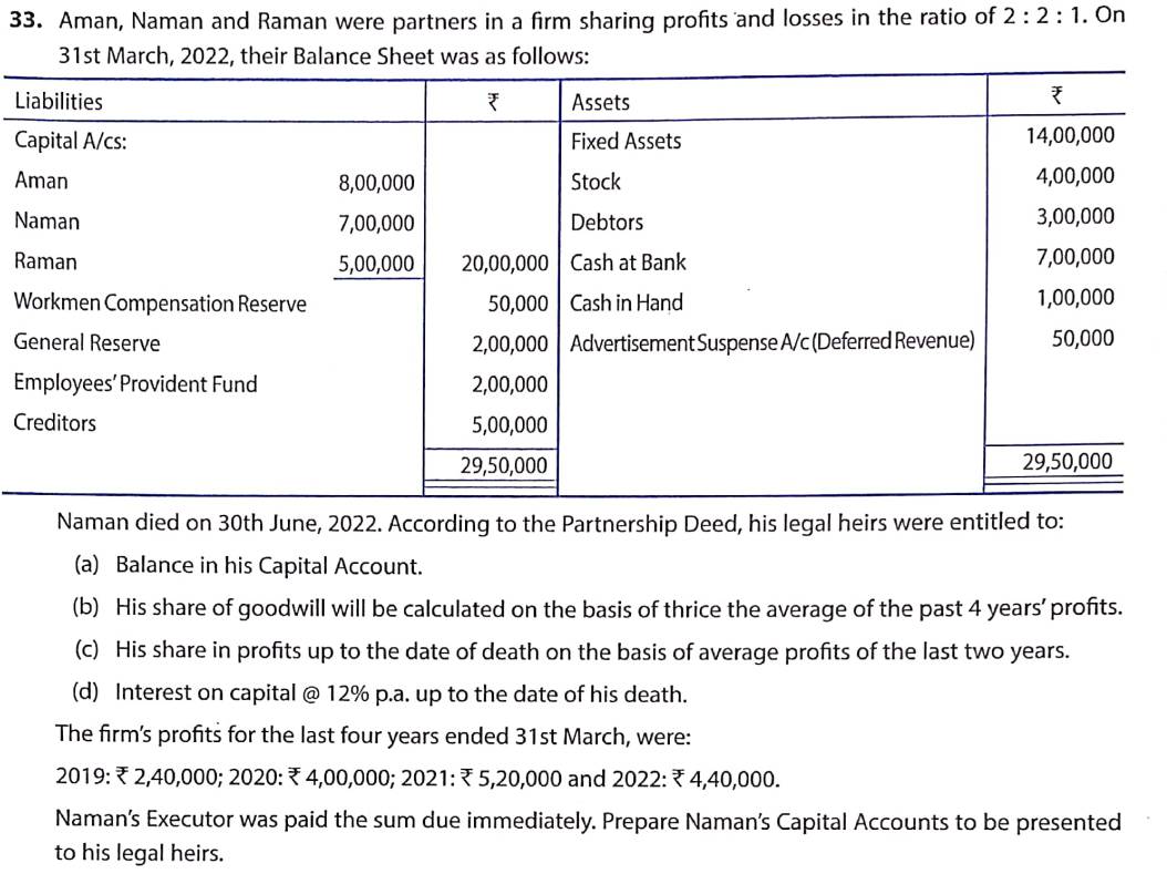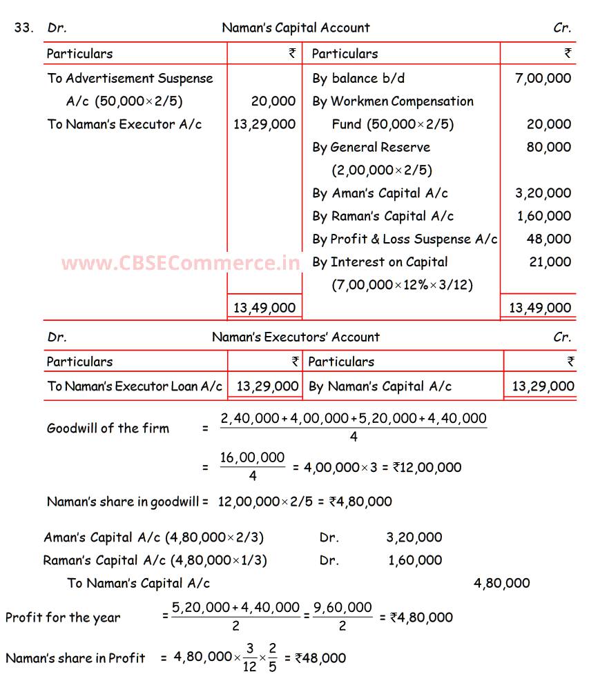 Solution of Question Number 33 Death of a Partner TS Grewal CBSE 2022-23 Edition