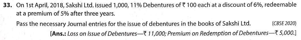 Solution of Question Number 33 Issue of Debentures TS Grewal CBSE 2022-23 Edition