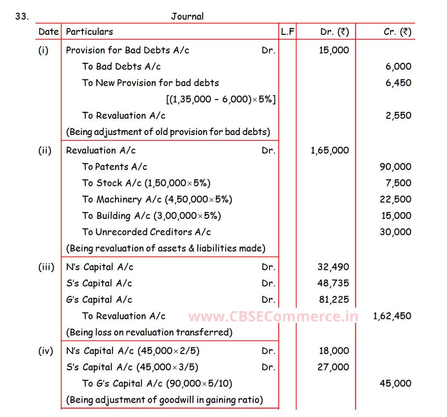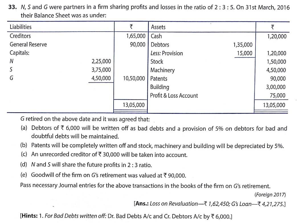 Solution of Q 33 Retirement of Partner TS Grewal 2022-23 [CBSE]