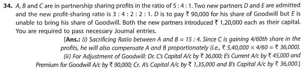 Solution of Question Number 34 Admission of Partner TS Grewal CBSE 2022-23 Edition