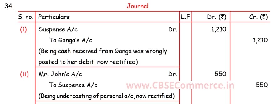 Here is the Solution of Q 34 Rectification of Errors TS Grewal Class 11 Accountancy 2023-24 for the CBSE Board.
