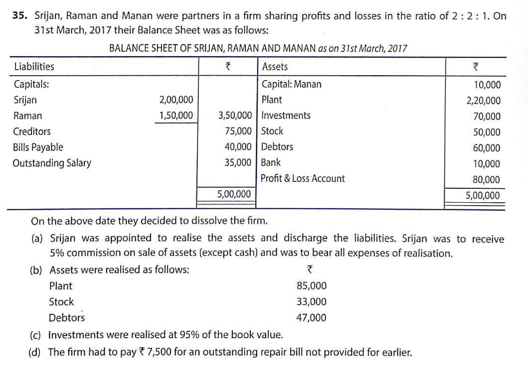 Solution of Question Number 35 Dissolution of a Partnership Firm TS Grewal CBSE 2022-23 Edition