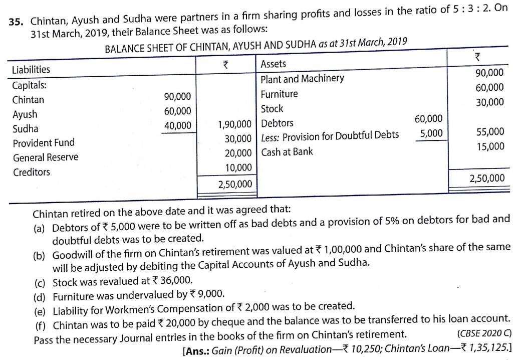 Solution of Question Number 35 Retirement of Partner TS Grewal CBSE 2022-23 Edition