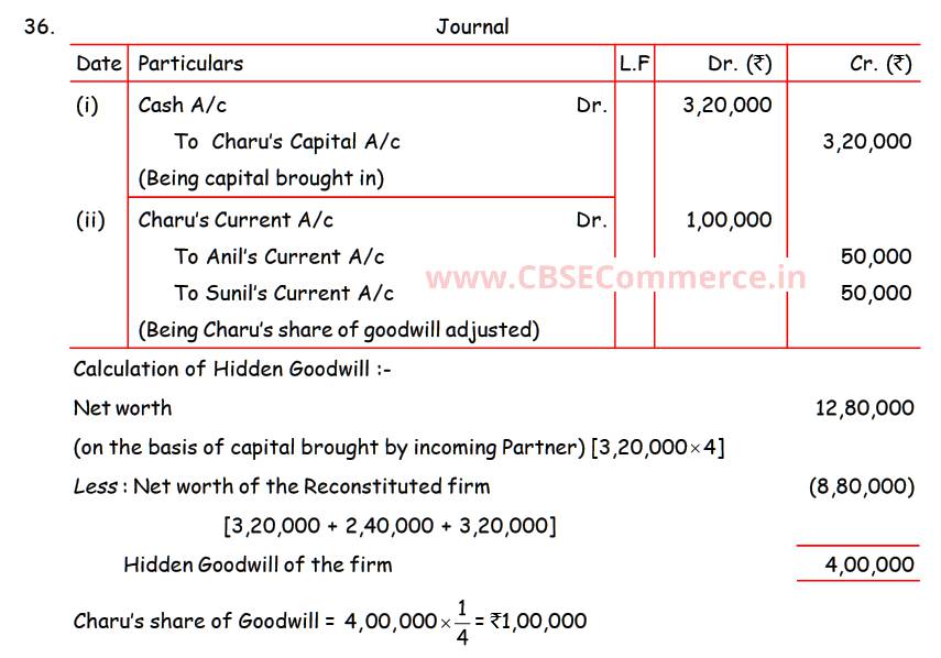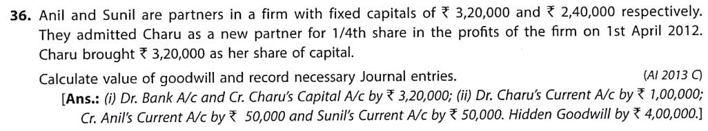 Solution of Question Number 36 Admission of Partner TS Grewal CBSE 2022-23 Edition