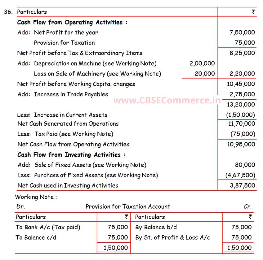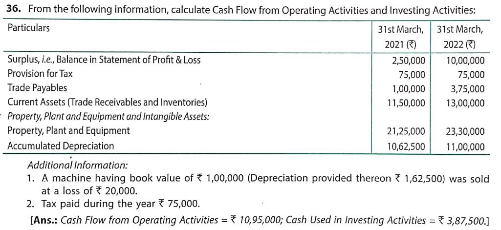 Solution of Question Number 36 Cash Flow Statements TS Grewal CBSE 2022-23 Edition