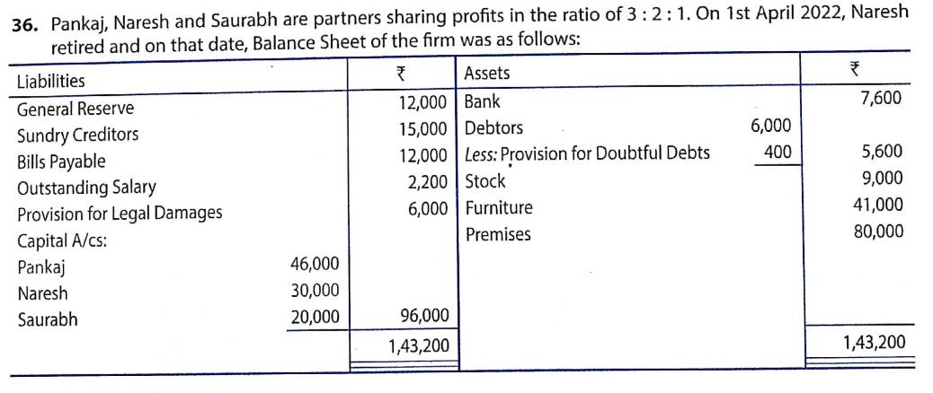 Solution of Question Number 36 Retirement of Partner TS Grewal CBSE 2022-23 Edition