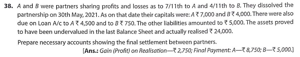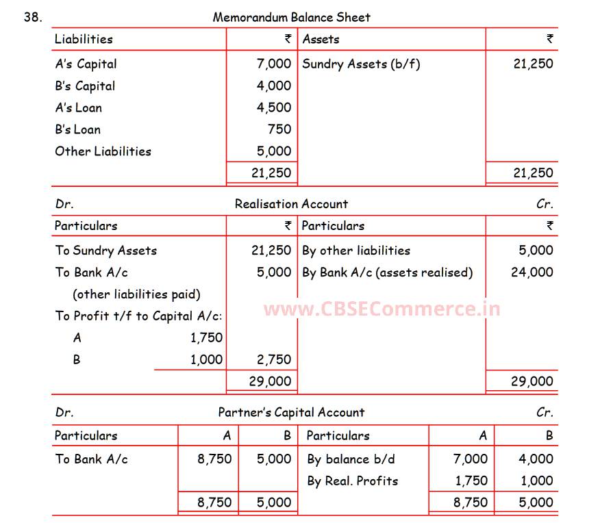 Solution of Question Number 38 Dissolution of a Partnership Firm TS Grewal CBSE 2022-23 Edition