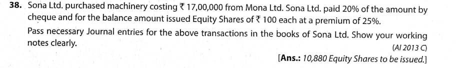 Solution of Question Number 38 Share Capital TS Grewal CBSE 2023-24 Edition