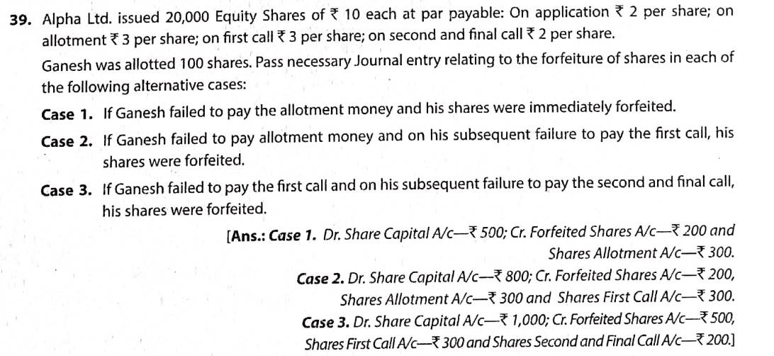 Solution of Question Number 39 Accounting for Share Capital TS Grewal CBSE 2022-23 Edition