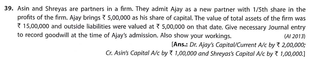 Solution of Question Number 39 Admission of Partner TS Grewal CBSE 2022-23 Edition