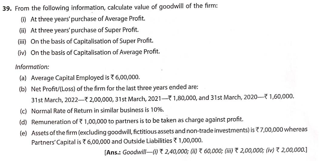 Solution of Question Number 39 Goodwill TS Grewal CBSE 2022-23 Edition