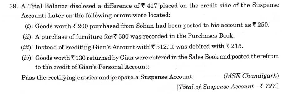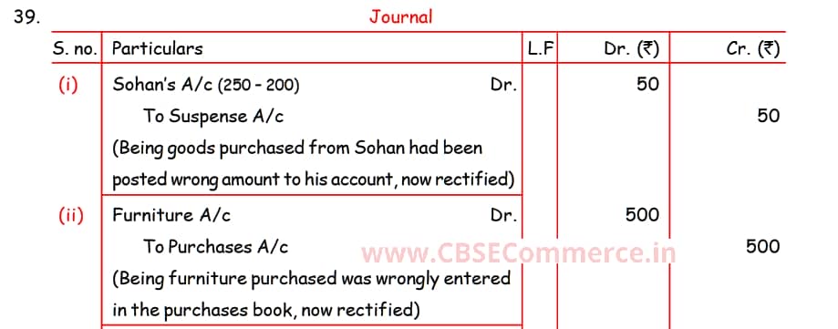 Here is the Solution of Q 39 Rectification of Errors TS Grewal Class 11 Accountancy 2023-24 for the CBSE Board.