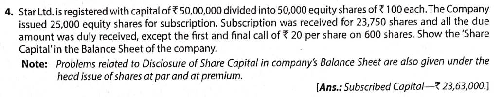 Solution of Question Number 4 Accounting for Share Capital TS Grewal CBSE 2022-23 Edition