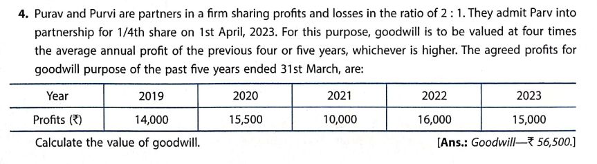 Here is the Solution of Q 4 Goodwill TS Grewal Class 12 Accountancy 2023-24 for the CBSE Board.