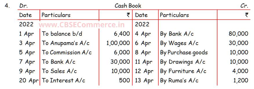 Here is the Solution of Q 4 Special Purpose Books I Cash Book TS Grewal Class 11 Accountancy 2022-23 for the CBSE Board.