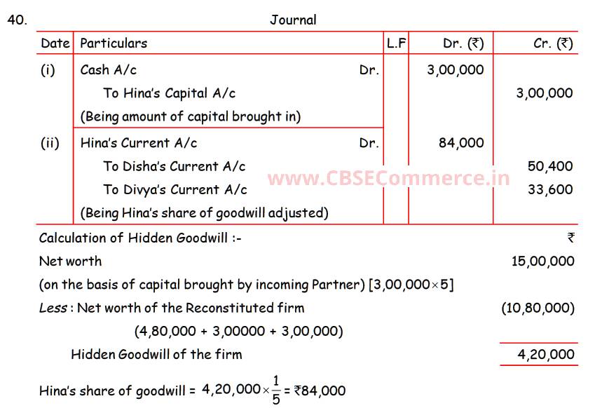 Solution of Question Number 40 Admission of Partner TS Grewal CBSE 2022-23 Edition