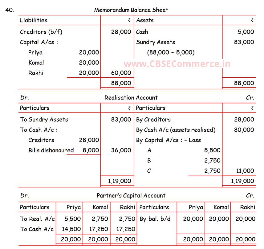 Solution of Question Number 40 Dissolution of a Partnership Firm TS Grewal CBSE 2022-23 Edition