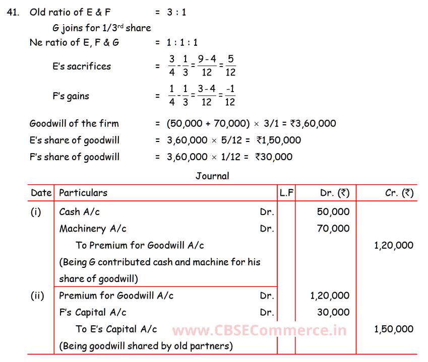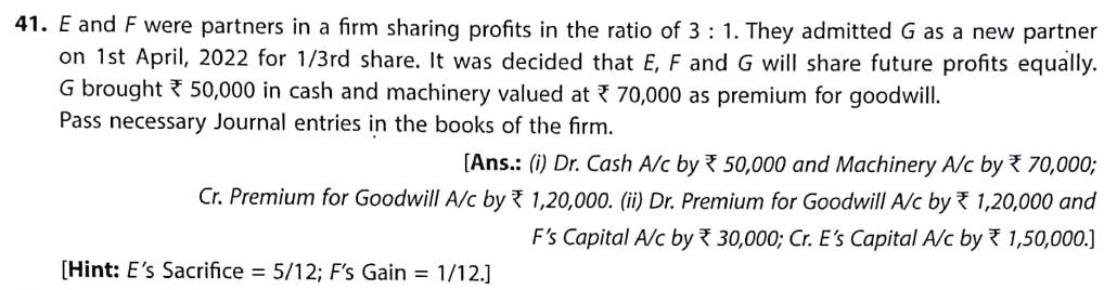 Solution of Question Number 41 Admission of Partner TS Grewal CBSE 2022-23 Edition
