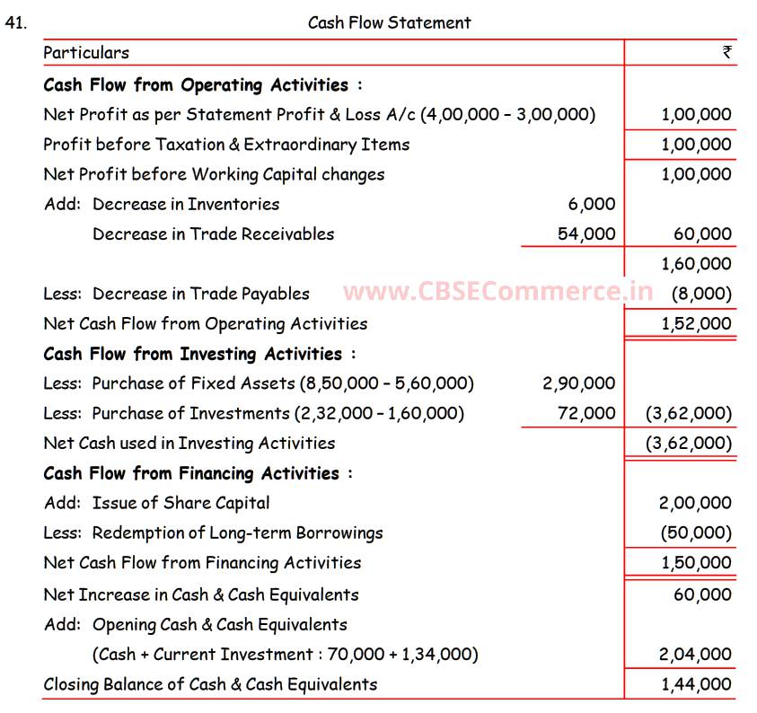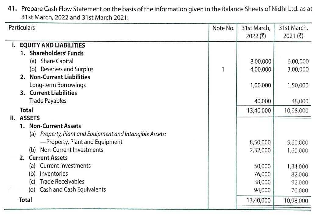 Solution of Question Number 41 Cash Flow Statements TS Grewal CBSE 2022-23 Edition