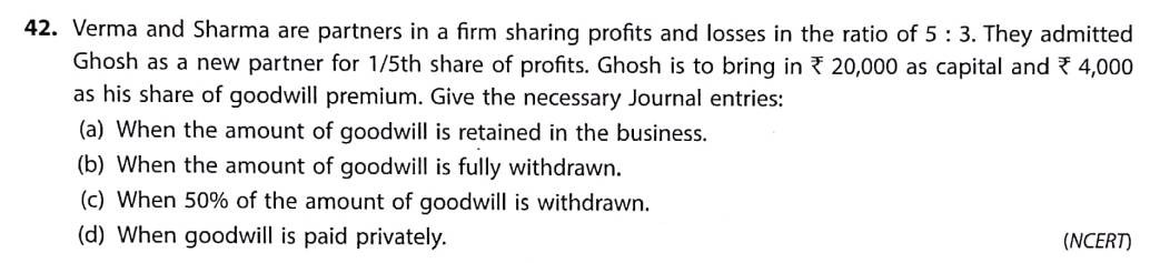 Solution of Q 42 Admission of Partner TS Grewal 2022-23 [CBSE]