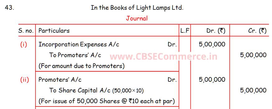 Solution of Question Number 43 Share Capital TS Grewal CBSE 2023-24 Edition