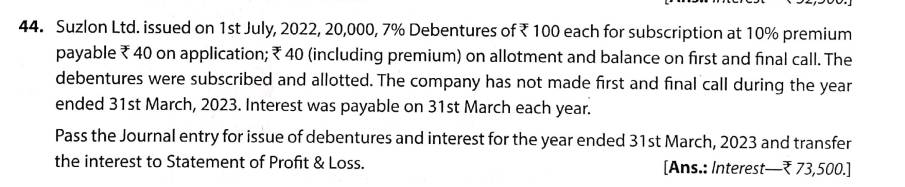 Solution of Question Number 44 Issue of Debentures TS Grewal CBSE 2023-24 Edition