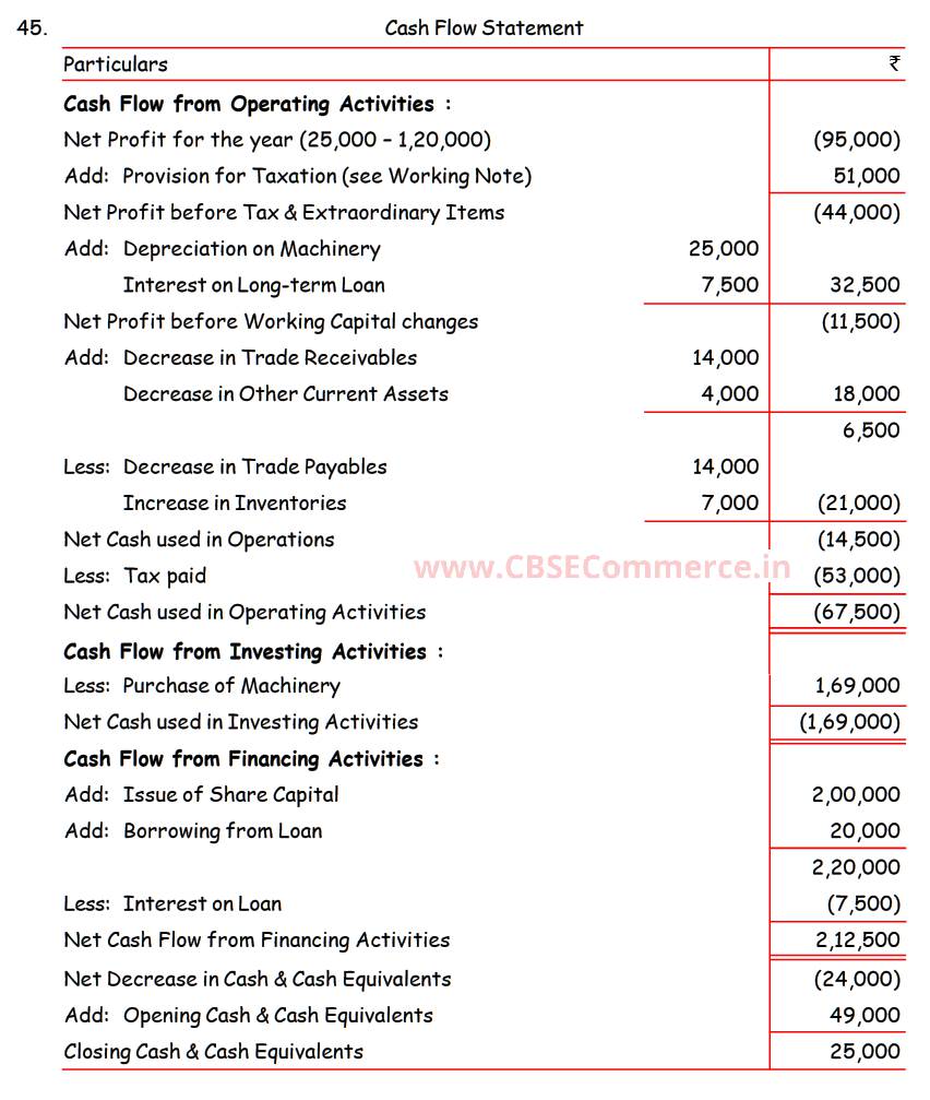 Solution of Question Number 45 Cash Flow Statements TS Grewal CBSE 2022-23 Edition