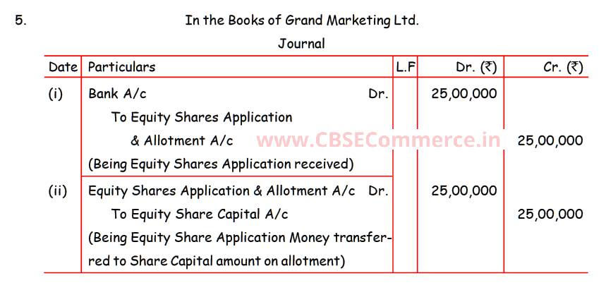 Solution of Question Number 5 Accounting for Share Capital TS Grewal CBSE 2022-23 Edition