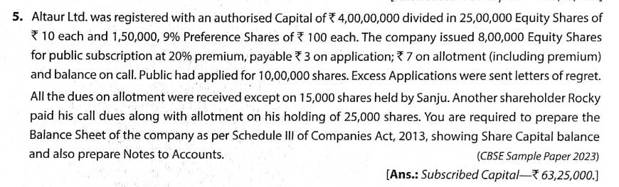 Solution of Q 5 Share Capital TS Grewal 2023-24 [CBSE]