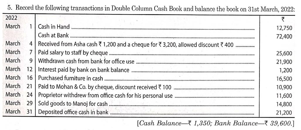 Here is the Solution of Q 5 Special Purpose Books I Cash Book TS Grewal Class 11 Accountancy 2022-23 for the CBSE Board.