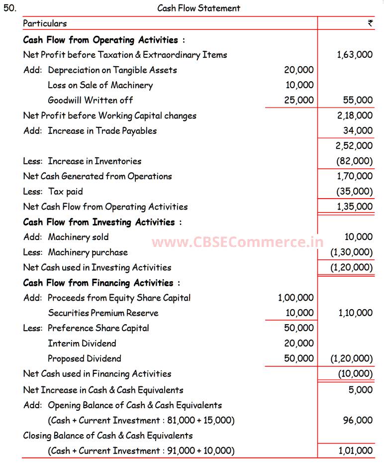 Solution of Question Number 50 Cash Flow Statements TS Grewal CBSE 2022-23 Edition