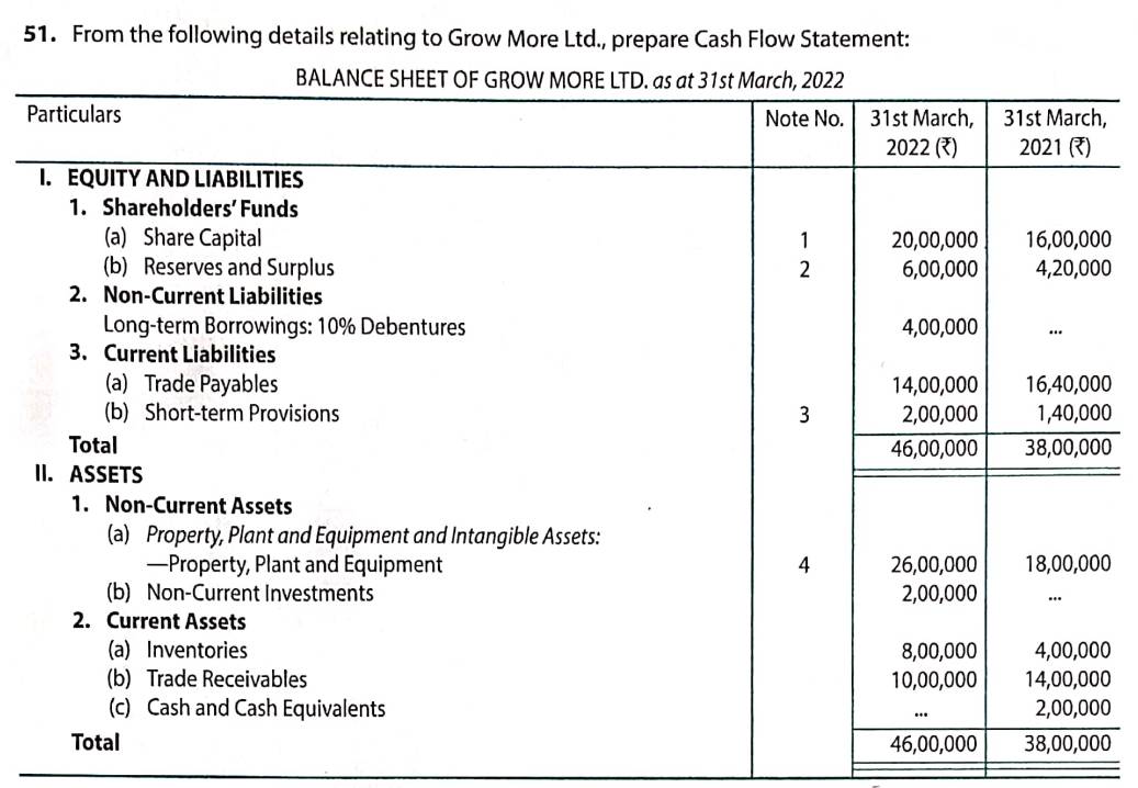 Solution of Question Number 51 Cash Flow Statements TS Grewal CBSE 2022-23 Edition