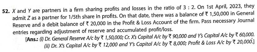 Solution of Question Number 52 Admission of Partner TS Grewal CBSE 2023-24 Edition