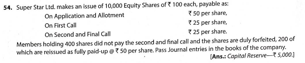 Solution of Q 54 Accounting for Share Capital TS Grewal 2022-23 [CBSE]