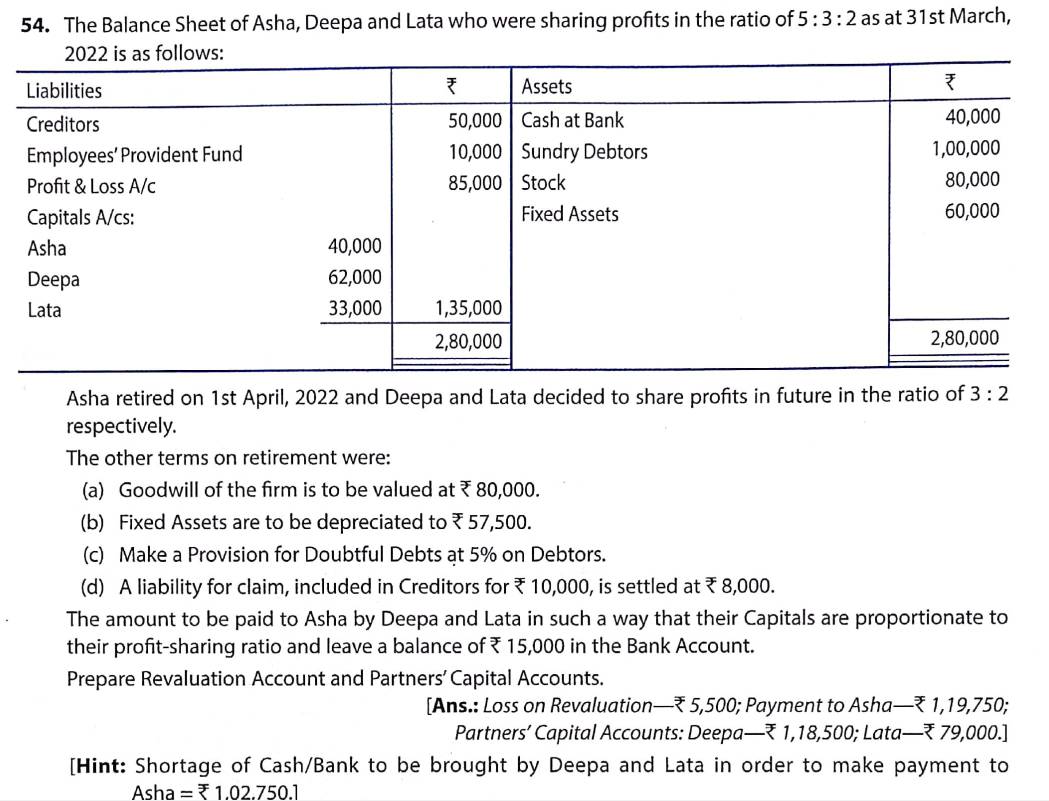 Solution of Q 54 Retirement of Partner TS Grewal 2022-23 [CBSE]
