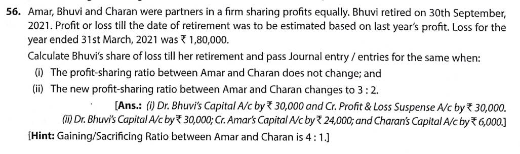 Solution of Question Number 56 Retirement of Partner TS Grewal CBSE 2022-23 Edition