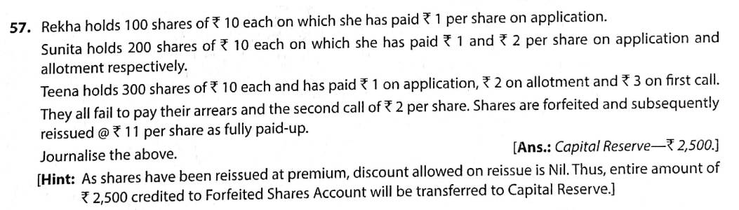 Solution of Question Number 57 Accounting for Share Capital TS Grewal CBSE 2022-23 Edition