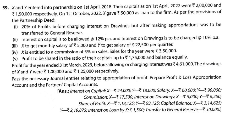 Here is the Solution of Q 59 Fundamentals of Partnership Firm TS Grewal Class 12 Accountancy 2023-24 for the CBSE Board.