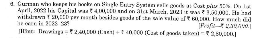 Here is the Solution of Q 6 Accounts from Incomplete Records-Single Entry System TS Grewal Class 11 Accountancy 2023-24 for the CBSE Board.