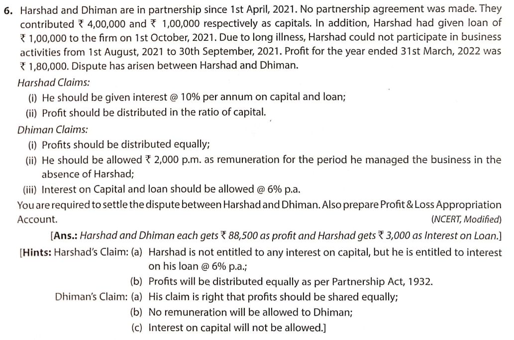 Solution of Q 6 Fundamentals of Partnership Firm TS Grewal 2022-23 [CBSE]