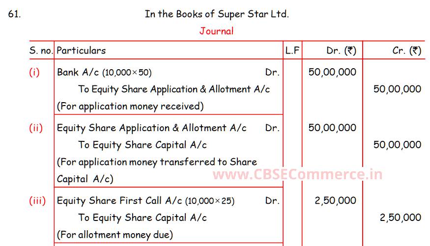 Solution of Question Number 61 Share Capital TS Grewal CBSE 2023-24 Edition