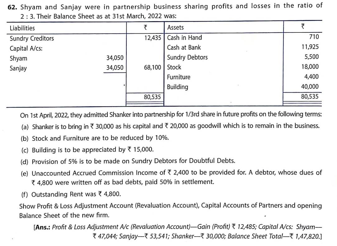 Solution of Question Number 62 Admission of Partner TS Grewal CBSE 2022-23 Edition