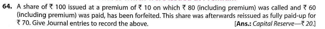 Solution of Question Number 64 Accounting for Share Capital TS Grewal CBSE 2022-23 Edition